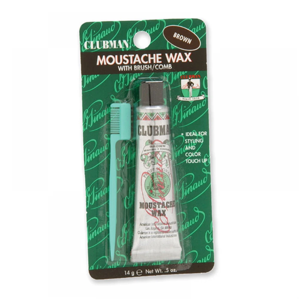 Clubman Pinaud Moustache Wax - віск, який тримається весь день, а потім легко змивається. Він вважається високоякісним воском чудової якості, який легко наноситься, оскільки має кремоподібну (але не липку) формулу. Віск Clubman Moustache Wax доступний у різних кольорах, а також у нейтральних кольорах, що робить його ідеальним для маскування сивого волосся.