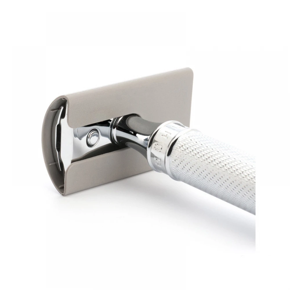 Зручний та необхідний аксесуар для зберігання вашої бритви належному стані. Захищає леза при транспортуванні. Ідеально підходить для всіх Т-подібних станків німецького бренду Mühle. Матеріал накладки – пластик.